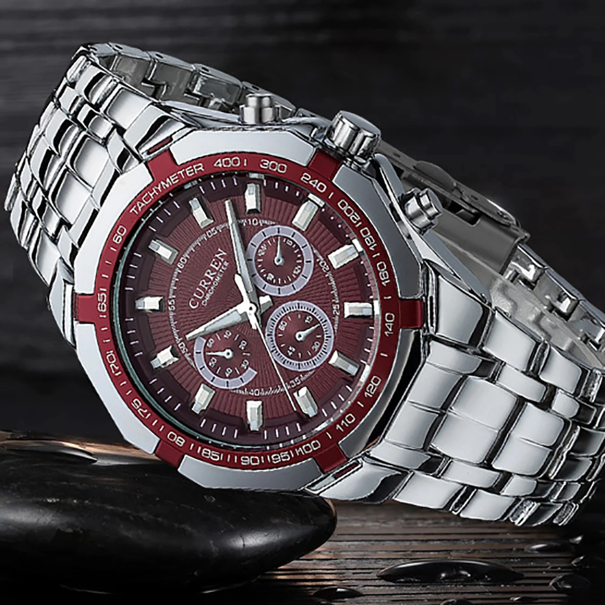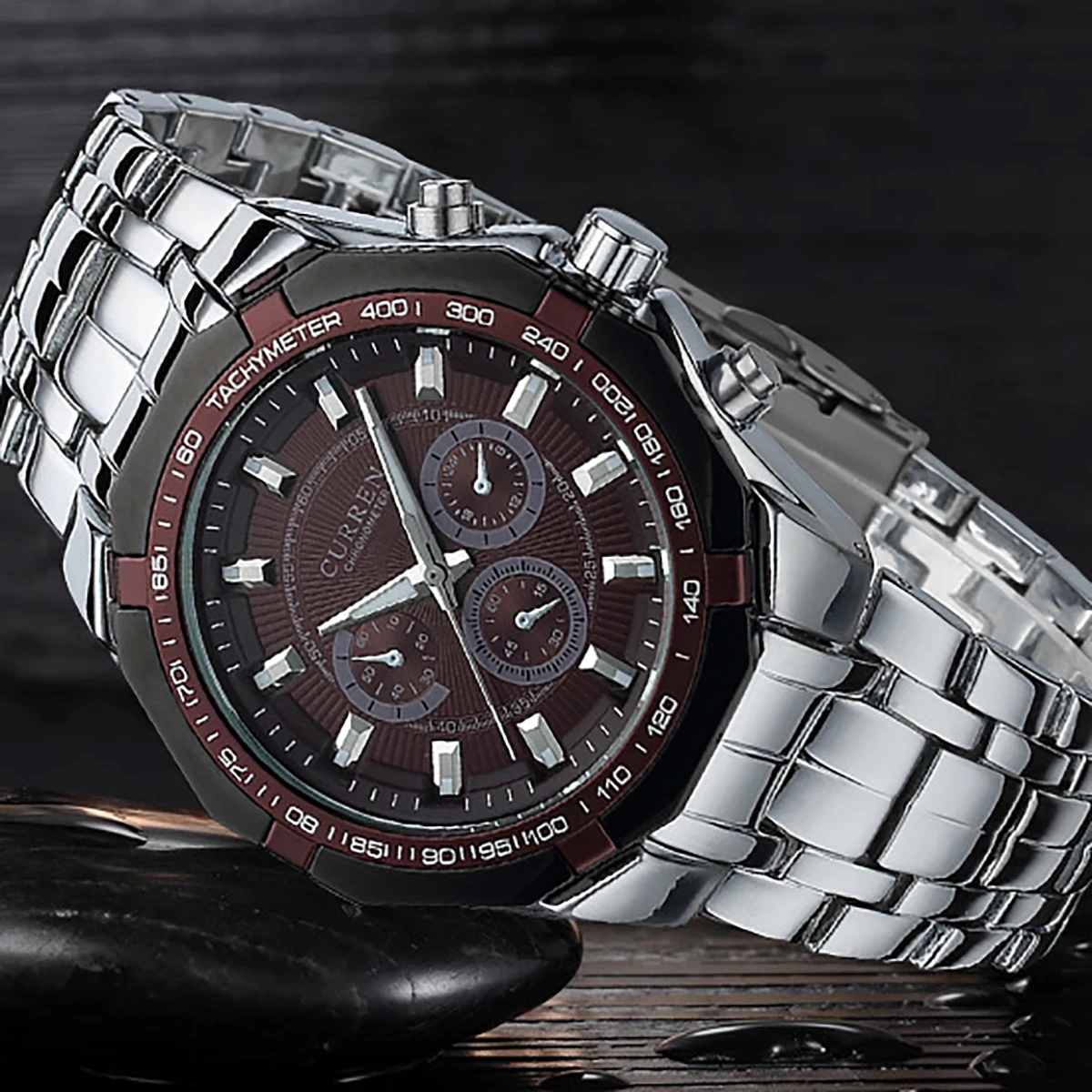 Quartz Watch For Men Fashion Stainless Steel Wristwatch Business fashion men's precision quartz watch three-eye fake wristwatch
